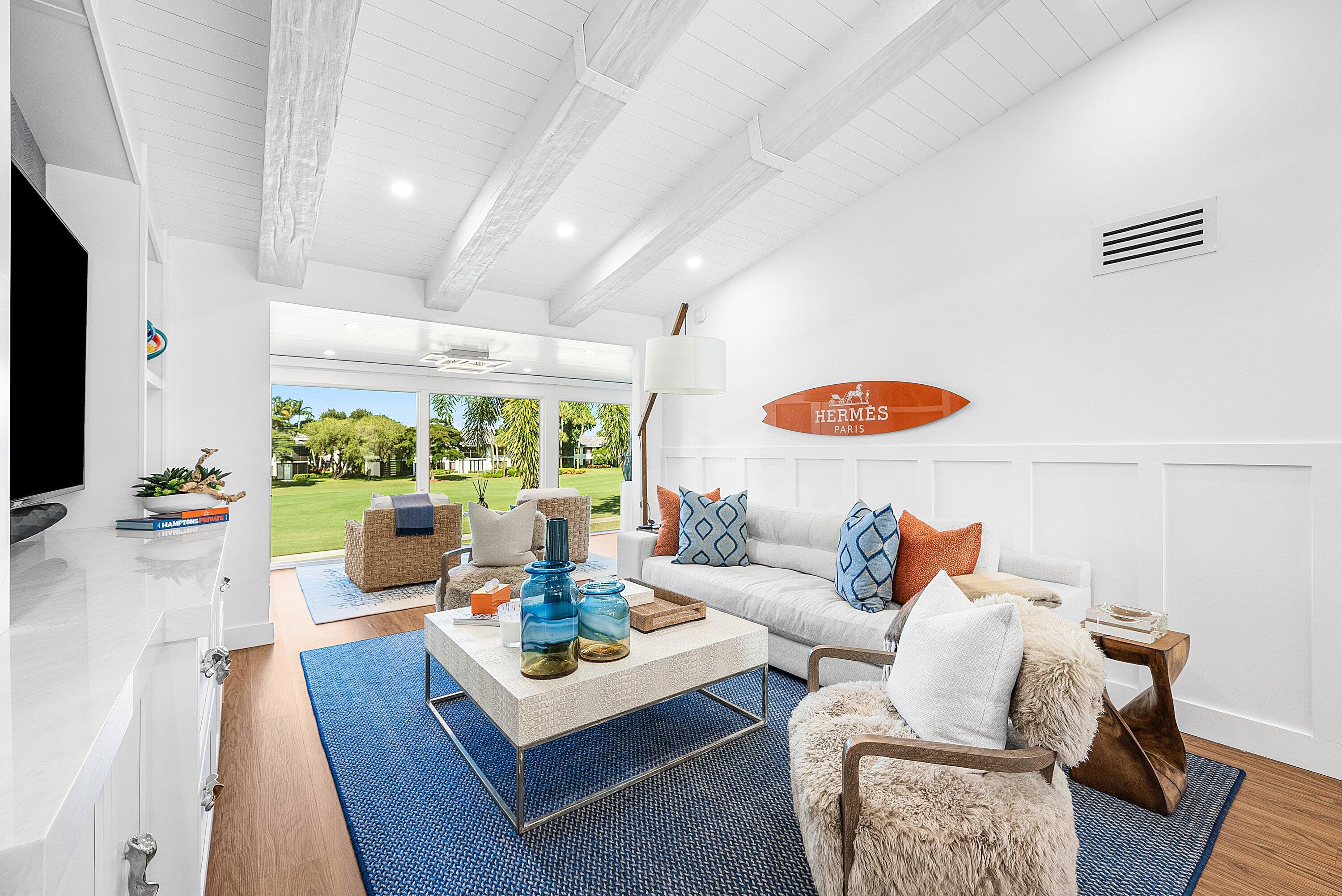 Throughout the home, you will notice upscale accents, including a decorative Hermes surfboard, with accessories, striking the perfect balance between opulence and comfort.